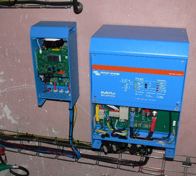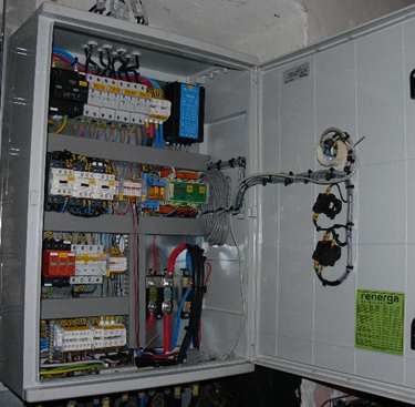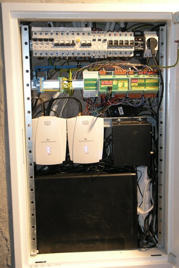Požadavkem zákazníka bylo řízení malé domovní elektrárny v ostrovním i síťovém režimu, řízení procesu nabíjení akumulátorů a ochrana baterií. Systém zároveň využívá přebytky k natápění boileru.