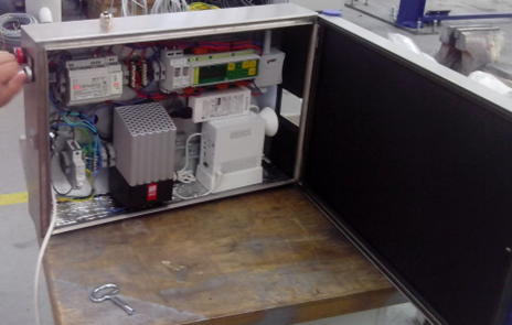 Požadavkem byla výroba klimatizovaného rozváděče, který bude umístěn v prostoru klimakomory s teplotami okolí od -35 °C do 60 °C. Chlazení je zajišťováno přívodem stlačeného vzduchu, ovládaného elektroventilem, který následně uniká přetlakovým ventilem. Ohřev je zajištěn rozvaděčovým topením Rittal. Alarmové stavy jsou zasílány operátorovi pomocí SMS zpráv.