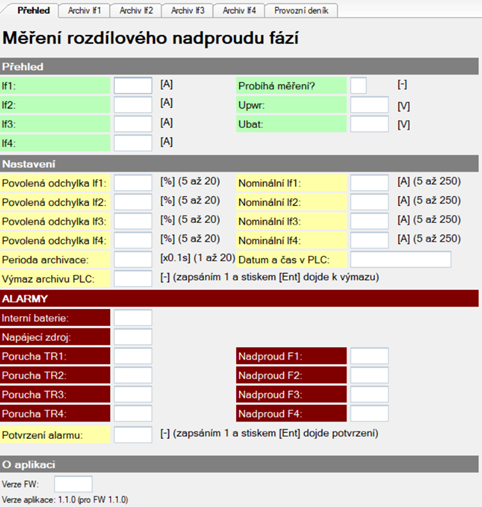 Požadavkem zákazníka bylo měření a archivace odebíraných proudů z měřicích transformátorů testovací stolice. Systém zároveň vyhodnocuje poruchové stavy z důvodu nadproudu. Vzorkování probíhá v intervalu 100 ms, což umožňuje včasnou detekci i krátkodobých odchylek.